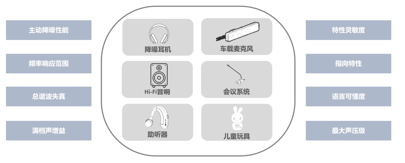 音响、耳机、麦克风、平板电脑、手机、助听器、会议系统、车机座舱娱乐系统等